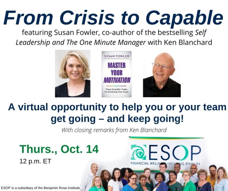 Ken Blanchard and Susan Fowler joined the exciting event, hosted by ESOP, about how your organization can help clients build the skills needed to move from crisis to capable